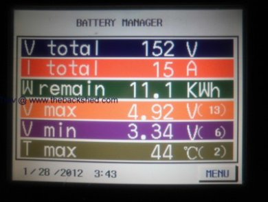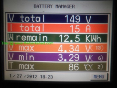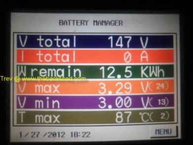 The EV Hilux has now passed the 50,000km mark with the LFP Thundersky (now called Winston Batteries) battery pack. They were fitted with speedo reading 350153 and now is 400231. That is 50,078km. Range check, did 91km using 19.5kWh, driving mostly at 100km/hr. Some capacity drop from last range check, but a lot better than I thought it would be.These LFP batteries were fitted in August 2008. It is now August 2011. 3 years. My guestimation is something like 800 cycles at high currents & very deep discharges. Temperature is often around 40 to 50C, at the centre of the pack (cell 23). The edges of the pack are 5-10C lower. Today with range test the centre reached 60C and the edges are at 43-46C. These batteries still do not have any automatic equalizing system on them. Balance every weekend, basically I just keep the pack at full voltage and switch on the 2 x single cell DC-DC converter chargers shown in previous post. Once a month I do a rough manual balance with some of the other cells. As said cell 23 is the one that most of the fuss is about, but as just proven, still has the capacity, so is still worth the effort to keep topping it up. Really, these batteries have taken a flogging (& still going) compared to what lead acid would give. I am impressed to say the least. They will be in the Hilux for some time yet. Trev @ drivebynature.com |