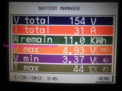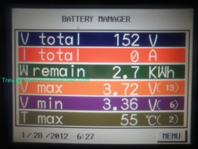 Here is the pictures of the BMonitorS main screen at the start and finished of the graph in the previous post. Every morning, within 1/2 an hr, finished at the same, high 3.79v and low at 3.70v. A difference of just 0.09v. Trev @ drivebynature.com |