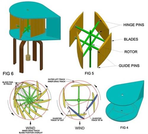 Posting info on a site like this actually provides prior art and I have 1 year to file for patent. I also mailed myself a copy of the design so I have a sealed post marked copy. I know about patents and have done a patent search on VAWTs but this one may get away because patents are too expensive. If I can't or don't patent it then nobody can...then it will be open for all to build and sell. The only thing unique about my design is the tracks and diverter tracks.