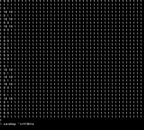 Beyond this rate there are dropped interrupts shown by non-unity count within the display line, as here for 5kHz: