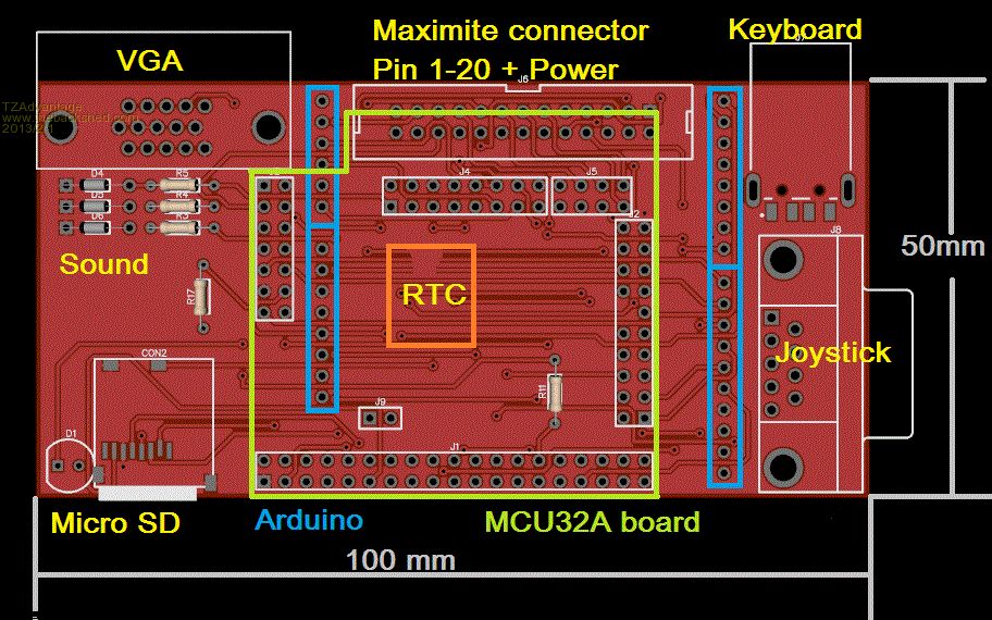 I found a nice solution for the arduino connector. I placed it on the bottom side of the board. This will allow easy access to both sides and keeps the 'Maximite' and 'Arduino' separate. Microblocks. Build with logic. |