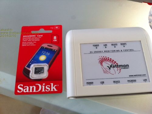 This is the Wattmon device I am using and the SanDisk 8GB brand new SD Card