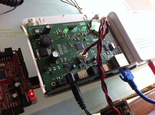 This is the setup (I had to open the cover to get to the serial console)