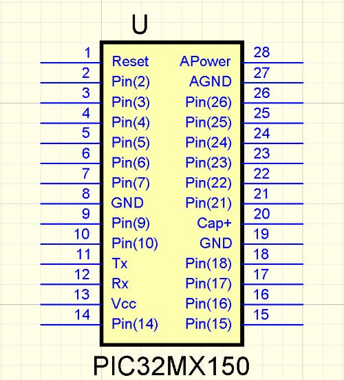Lads, especially ViscomJim, Thanks to WW's good (pigeon) eyesight, here is a, hopefully, corrected version of the Pic32MX150 28pin library part for use as a micromite (uM names have been used) If there is anything else wrong I am going to give up. 2014-07-06_222630_PIC32MX150.zip