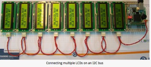 Here is a cool pic of a few i2c lcds running together. How is your board coming?
