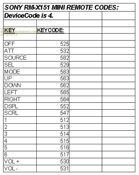UPDATE My dinky Sony remotes arrived today, so I immediately hooked up a TSOP4840 to a MM, and ran the test code to find the codes. I post this chart here, for anyone else to use, should they wish to use this remote.
