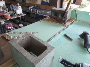 Cut out the second width pontoons. Added a V-Bottom. More planing surface and more tunnel space. A little less buoyancy though, so draft is more. Fitted 2 Golden motors.