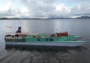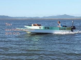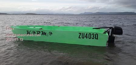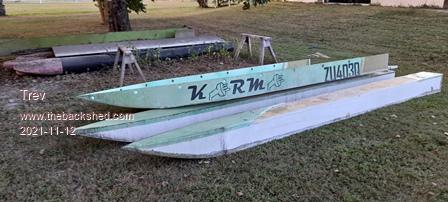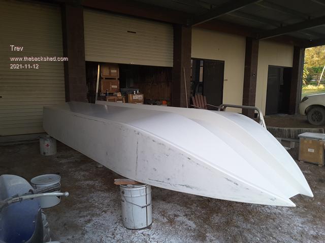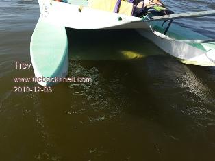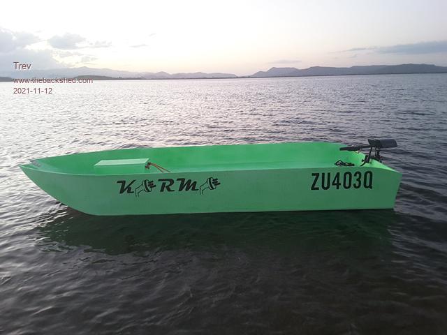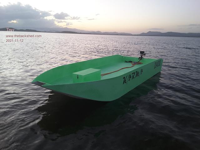 3) With v-bottom tunnel and single width pontoon. Probably still 130kg plus .. Total 362kg or 372kg But I don't think I tested the heavier motor on this configuration. Achieved 24km/hr at 175A.