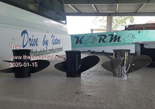I have a little 78lb electric trolling motor that came with two props- one is a hard plastic jobby that gets about 5kmh, the other is a floppy 'jelly' prop, meant for mangroves etc, same size, same pitch, but only makes 2kmh (due to its bending I suspect)- it really is 'floppy' and you can bend the tips back to the hub!