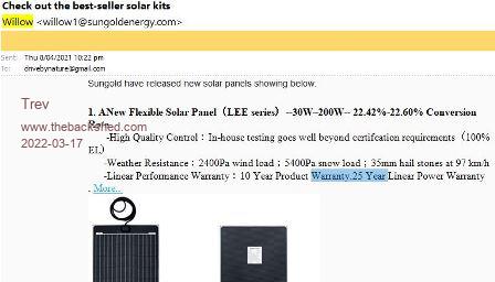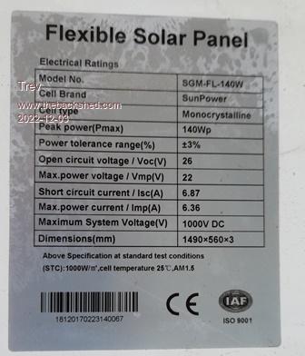 I bought Sungold flex solar panels (whole pallet) quite some time ago (years) with this idea in mind (and also as a business proposition). However, a high number of these panels sold to customers have returned. They don't last and Sungold factory won't honour their original warranty terms. They told me 5 year warranty, but many panels are not lasting even 1 year. My brother is one of those customers. I decided to keep him as a test pilot of these panels. He is up to 5 or 6 replacements now. I needed to put up some panels for charging an electric quad, so decided to mount some Sungold on alloy (better cooling) because most returned panels were sikaflexed on surfaces without cooling.