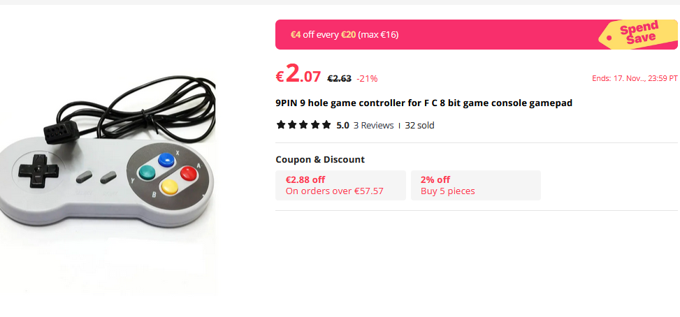 Note that none of the photos on the listing corresponding to the AliExpress image that @Martin H posted show whether this device has the shoulder buttons or not, and the listing says "Compatible Nintendo Model: Family Computer", which if accurate is the Nintento FamiCom, known to us in the "West" as the NES, not the SNES (Super FamiCom). EDIT: I know far too much about Nintendo gamepads. I'll be interested to hear what Martin ultimately has delivered. Best wishes, Tom Edited 2023-11-12 01:26 by thwill MMBasic for Linux, Game*Mite, CMM2 Welcome Tape, Creaky old text adventures |