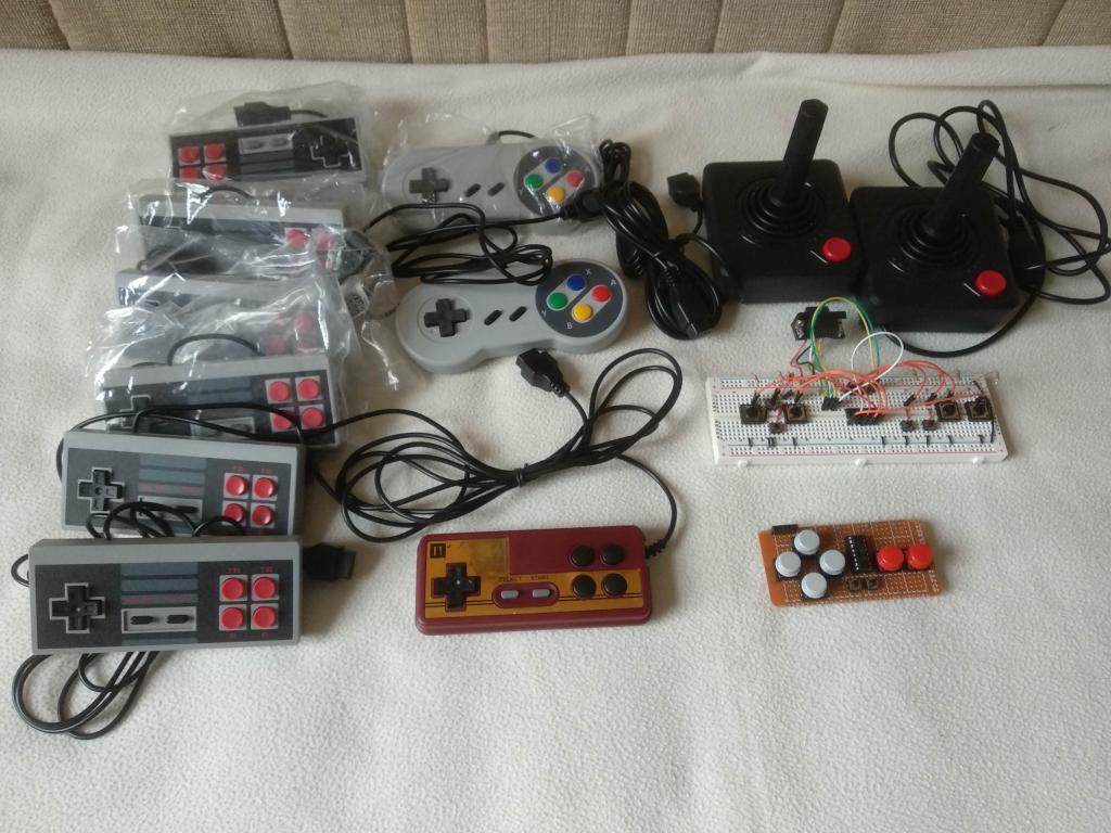 - top-right are AliExpress Atari joysticks. They seem to work fine.