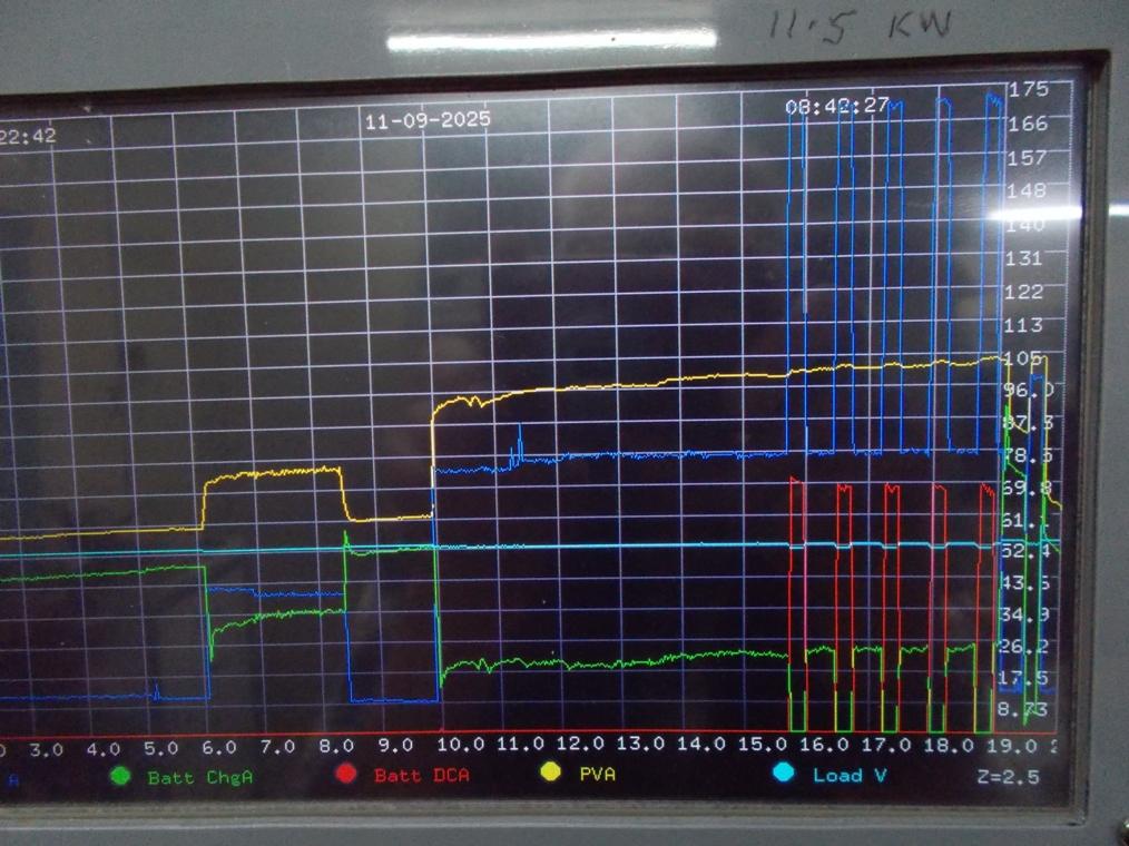 FYI a quick screen photo of the Ceramic Cook Top and other general loads. Blue: Inverter Input current. Green: Battery Charge current. Cyan: Battery Voltage. RED: Battery Discharge current. Yellow: Solar Current. Horz scale in minutes updated every second. Vert scale in Amperes, and in Volts for Cyan trace (Battery Voltage) Because of the single Vertical scale, these reading are slightly low. IE: Battery volts is actually 54V. Below: DC current from Cook-Top cycling from 4.2kW to almost 10kW. Below: Cycling from 640W <-> 5.4kW and then 640W <-> 3kW. Below: The Inverter output Wall power Box, the Tesla kWh meter will accurately calculate Power down to very low power levels (PF does not suddenly go to .58 because of the inability of these colour multi function meters to calculate low Power PF. The "INV AC Direct" switch was for emergency running with just essential devices, I have a feeling this may not be needed, but I have it just in case. These meters were reset recently when the new power box was fitted. _ Edited 2025-09-11 13:09 by KeepIS NANO:Inverter V 8.2ks - Linux AvrDude GUI script V4.1 |