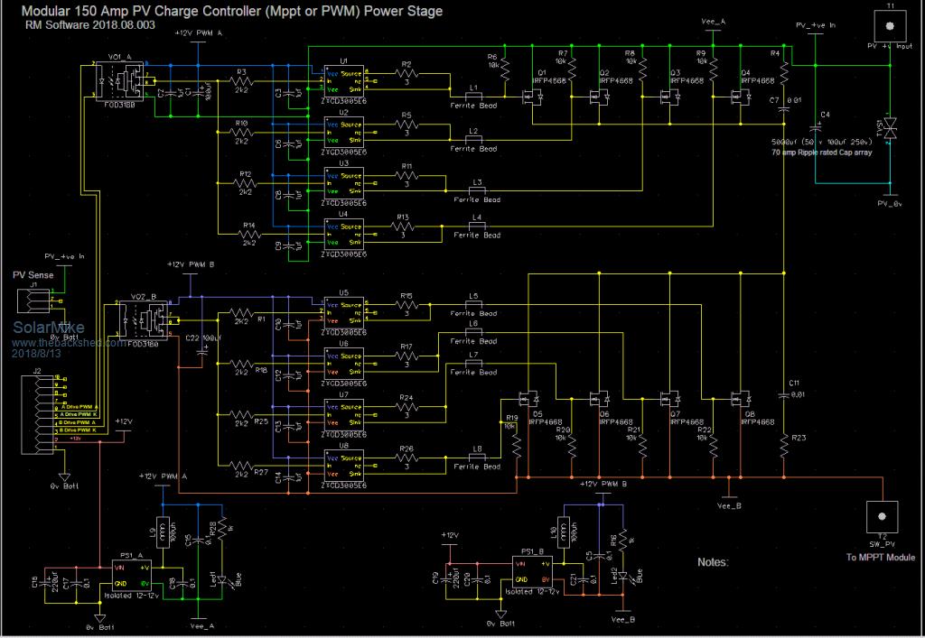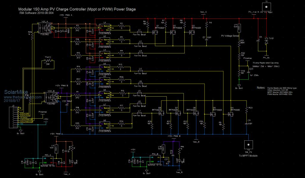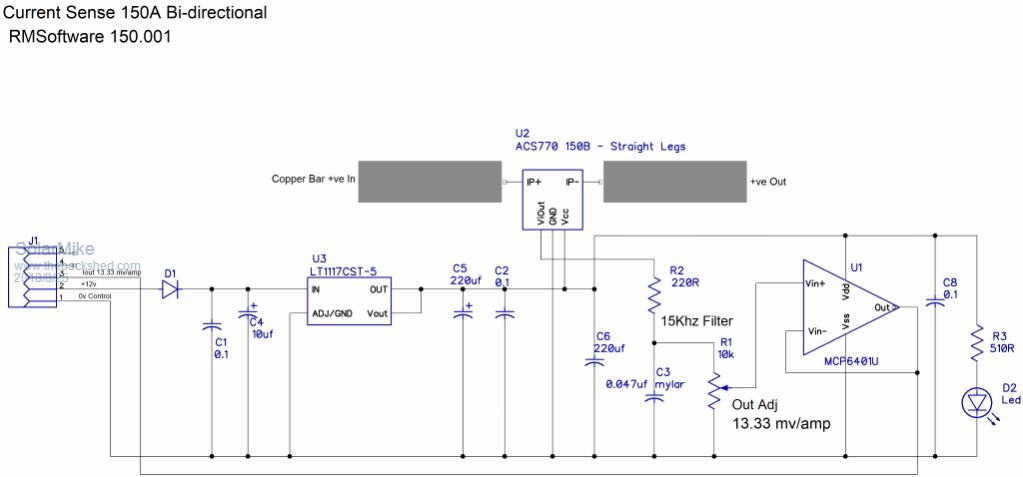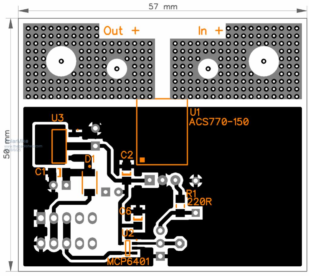 Hi Solar Mike, Had bit of a look at some of your schematics. Very impressive !!! Quick question. How are you actually going to mount / connect the ACS770 current sensor? I notice you have 150A PCB screw terminals listed. They would not be that small. Brian ChopperP |