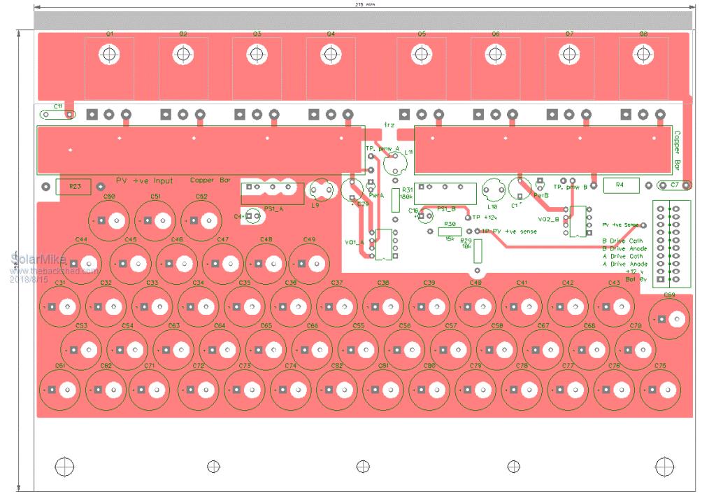 Agree, wish it was easier, straight off the PV panels with a bang bang switch sensing battery charge voltages would be the simplest, easier with higher voltage systems and matching panel voltages. I'm only making a dual type of controller as I have multiple PV setups and would rather have something that can be used for both, and not using a commercial product with its built in obsolescence that no one can repair when it blows up. Latest power board pcb. Cheers Mike |