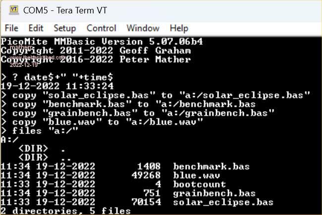 Forum Index : Microcontroller and PC projects : PicoMite V5.07.06 preview - flash file system