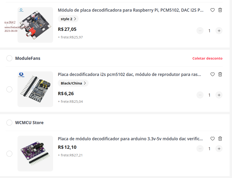 IIRC Tom's case is a bit special. The tiny speaker acts as a mechanical filter to reduce the 44kH. It can't simply be substituted by an amplifier input. You get better quality with less filtering by using a DAC. Can you sugest a good DAC for use with PicoMite in Aliexpress? I am looking this models in the attached image. ![]() PCM5102 the first 2 and UDA1334a I have been playing with sound on the VGA picomite, and have oe observation I would like ot share. The sound suffers from PRINT statements. Te print statements go to the USB interface (console), and I think that USB stack has impact on audio. Only after I removed the last PRINT statement (change to a TEXT statement) the audio was flawless on 126MHz CPU. Volhout Sorry to join the conversation, It's an interesting observation for me. I'm doing some tests with tone and the sound is coming out bad, although I connected an amplifier directly to the GP0 and GP1 outputs, without the low filter. The print in program, it just tells you which keys to press to make a certain sound. Thanks You are new to the forum, and there have been megabytes of discussions on audio the last year. To summarize: pwm audio needs a filter, and the picomite powersupply causes noise. Simplest is to use a linear regulator for 3.3V. Volhout Good tip, I'll give a search in the old threads on the subject. Best Regards, MMBasic 5.0707 on PicoMite VGA |
