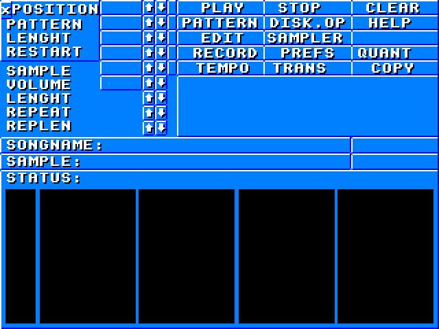 DTEXT 4,102,"SONGNAME:":DTEXT 4,114,"SAMPLE:":DTEXT 4,126,"STATUS:"
