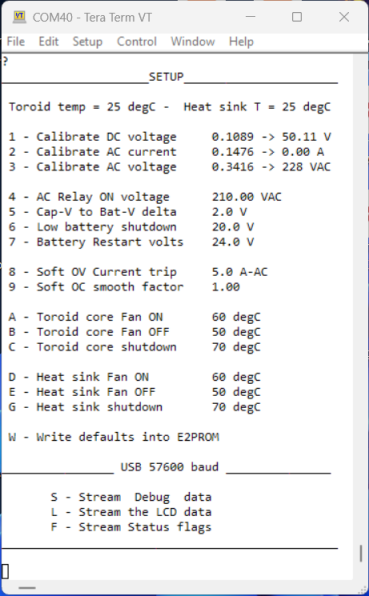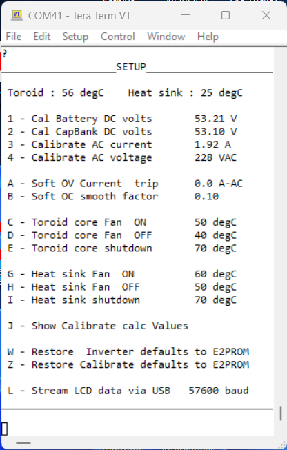 FYI The beta code has arrived for testing, hopefully once Poida is happy with his wonderful creation, and made any late updates (if needed), it should not be long before the release. All I can say for now is that it's looking really nice, and most of what I've thrown at it has not caused the slightest hiccup to the SPWM drive or the Power stage, in other words, it has not glitched under any crazy power supply condition. The operational status display is good, and if the inverter is not powering up, you usually have the reason displayed on the LCD, or by connecting the USB port to a Terminal program and streaming some more detailed status info. The data normally sent to the LCD can also be displayed via USB on a PC. All are selected from the Main settings menu which is accessed by the USB port and a Terminal program running on a PC. Tera Term for windows is what I'm using. I'm about to start building a second controller, I cannot wait to get that into the Main big Inverter. NANO:Inverter V 8.2ks - Linux AvrDude GUI script V4.1 |