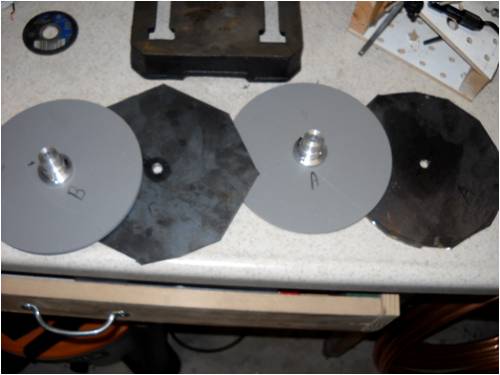 There's been a slight change in plans. Because of my limited machining capabilities, I chose to use an "off-the-shelf" die-cut piece of iron plate as my magnet-backing plate. Unfortunately, in a "perfect world" it should have been about 1/8th inch larger in diameter, but I think it will work just the same.