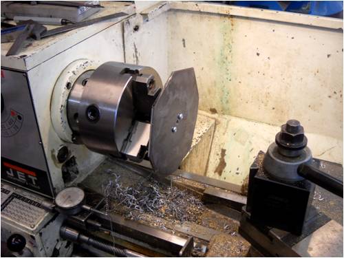 This is a shot of the bare plate chucked up in the lathe as we begin to