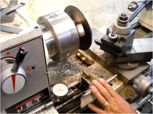 Here's one plate done. Note the micrometer Dan attached to the lathe