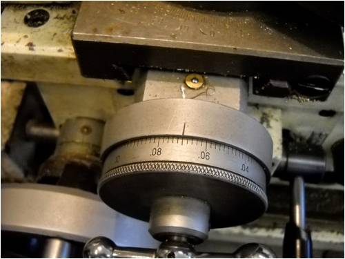 For those who don't own a lathe, this is the feed knob on the cross-slide.