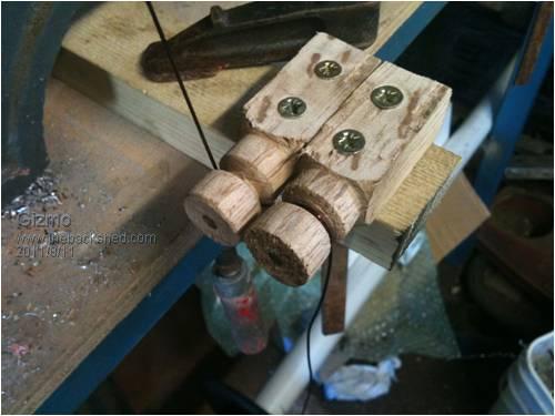 Just an update. Picked up the copper, and started winding coils. Used the CNC to make some coil formers. This is the wire tensioner, it works brilliantly! Phills suggestion, make some little paint brushes for laying down the epoxy as I wind the coils. I found some twigs in the yard and hairs from a old paint brush. Winding the first coil. I ended up using the lathe to support the coil former.