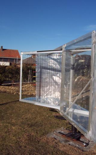 After being sick for a whole week and two weekends, I've mounted the windturbine on the concrete plate. At this moment I've used plain plastic to cover the wings. Even in very slow winds, the wind mill is already turning. When there's a lot of wind, the speed of the rotations are changing a lot. About the 'flaps': I've mounted one paper flap to see whats happing. When there's a lot of wind, the flap remains closed and only opens a little time. The flap is pressed against the wire because of the wind circulation in the wind mill. But before to continue these tests, I'll have to make a measuring system. Greatings. |