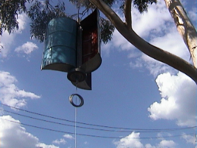 Hello Bart,yes today was THE day.Out of bed at 6am and in the garage for one more final modification(I wish)6 hours later and hurray the eagle has landed.Up up and away my beautifull windmill.Looks like a UFO in drag(pun intended).Not a lot of wind but glorious to watch.I am contemplating another on top. But before it drops out of the tree and becomes my disarster I need to fit a fall arrestor.So off to the auto wreckers for a seat belt tensioner.As for the design it's a combination of 5 years of model testing and everything I could glean off the net.And then adding it all together.Is it efficent only time will tell.Yours is massive at 3 meters mine is only 1 meter dia.But it's all good fun.I hope to try the counter rotating at some stage also.From the sounds of silence VAWT if I can figure out how to upload a video I'll post that soon.Got to get back to my forbidden fruit(Belgian beer) and pat myself on the back yet again.What a day.And it even looks like it's grid connected. Anthony