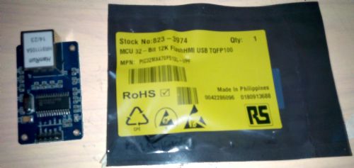 Pictured next to one of those ethernet to serial adapters that I ordered at least 2 months ago (which finally arrived today).. Yours looks like the 64pin baby.. I ordered the 100pin one.. I hope to mount mine on a UBW32 board.. I need to check pinouts first and work out if its worth doing. Mick Mick's uMite Stuff can be found >>> HERE (Kindly hosted by Dontronics) <<< |