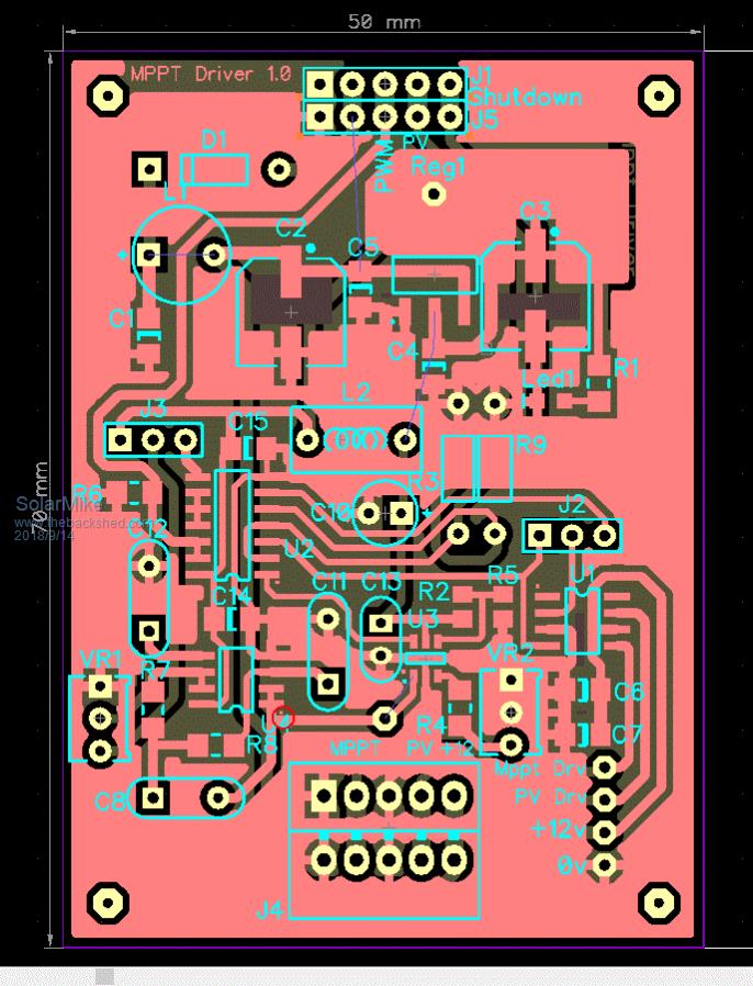 Yes, will post final pcb gerbers here when its all working, the mppt function which is software dependent will work as long as the PV voltage > battery by a reasonable margin. Cheers Mike |