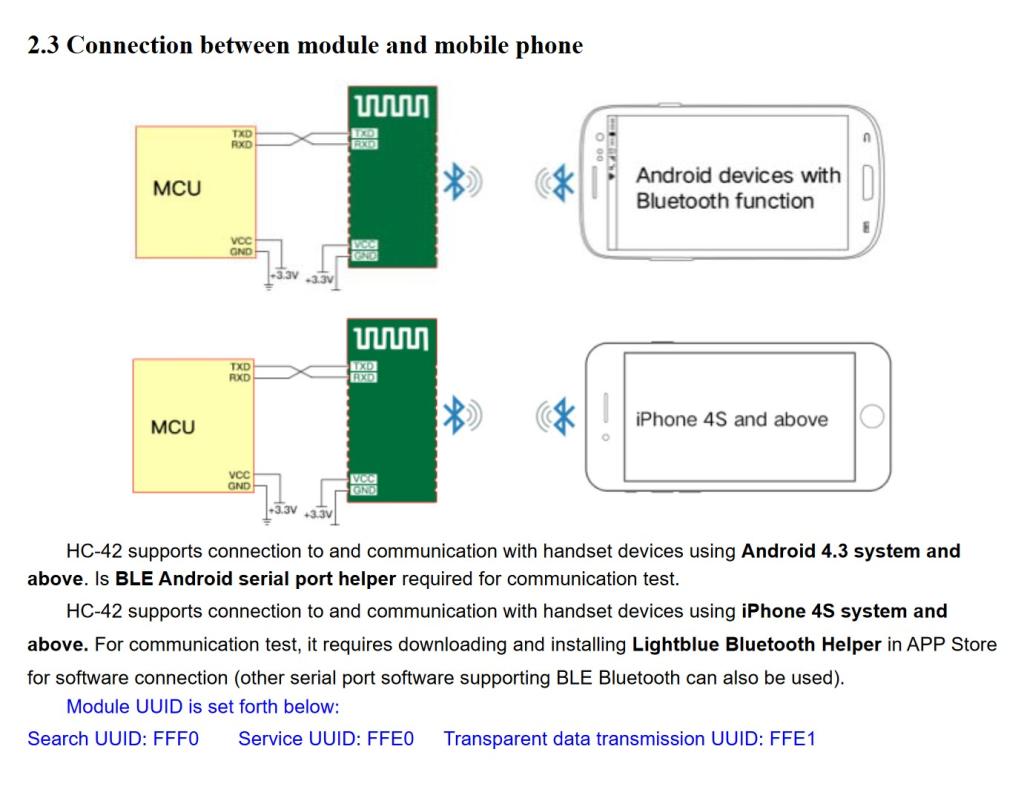 And if someone used the HC-42 BLE5.0 module (very similar to HC-12 but bleutooth