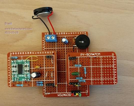 Thanks mozzie, That sounds good to my old ears. Much better than the buzzer verion. I wonder whether an H-bridge chip could do the same? More compact. I'd be interested in what Tom thinks. The extra current draw may be an issue for him though but depending how loud it is a series resistor might tame it a bit. Bill Keep safe. Live long and prosper. |