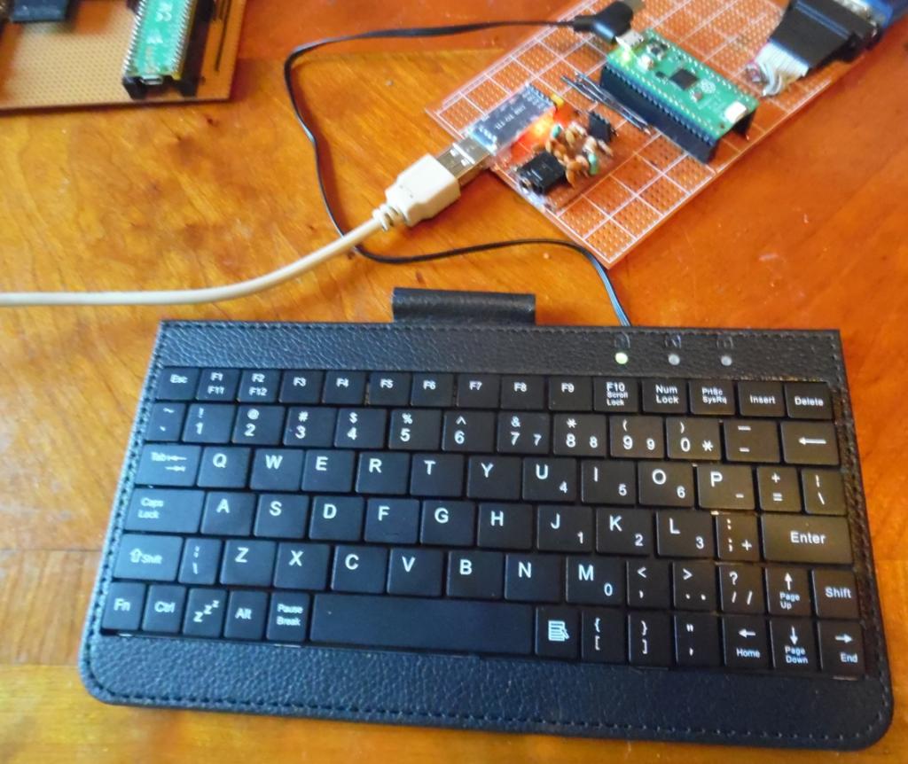 It doesn't work like that. When you load the USB version of the firmware: . The USB port on the Pico becomes a USB host, to connect the USB keyboard or a USB hub to. You will need a micro USB male to (usually) USB-A female adapter. . Pins GP8 and GP9 become a COM port for connection to an external terminal, usually via a USB-TTL converter. You can't connect a USB keyboard to this. Edited 2024-03-19 05:53 by Mixtel90 Mick Zilog Inside! nascom.info for Nascom & Gemini Preliminary MMBasic docs & my PCB designs |