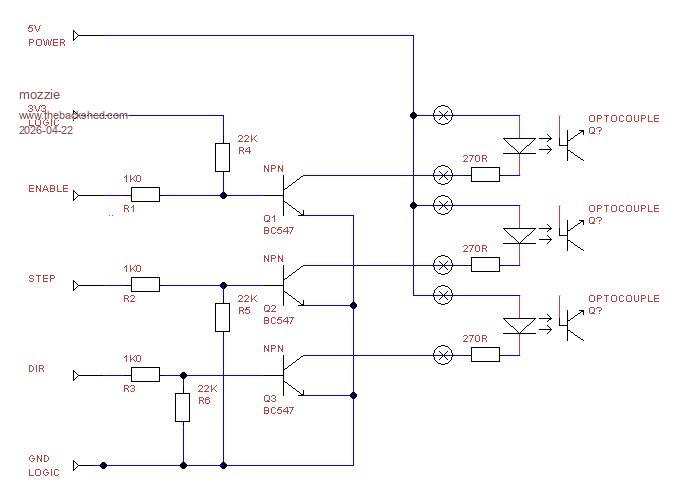 I posted on the other thread regarding the enable signal being the wrong polarity, however from memory most of the stepper driver boards it is really a DISABLE signal so the current setup will work with the following circuit: