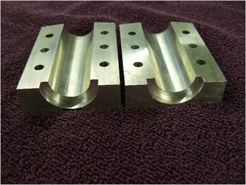 I used 6061-T6 extruded alum rectangle stock to machine three mounting blocks to mount the alum rods to the steel hub plate. Using six ¼ 28 socket head cap screws per mounting block to secure both the blocks and rods to the hub plate gave me plenty of pressure to keep things nice and tight. Maintaining a gap of approximately 20 thousands of an inch between the upper and lower extrude-ions applies a spring pressure (if you will) on the rods to eliminate the cap screws loosening from vibration.