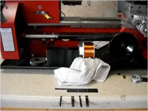 This shot shows the spool of copper wire and the rag underneath