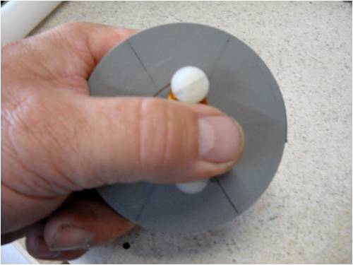 I used the plastic (grey in the pictures) holder thing as a way to keep track of stuff and assure even spacing. Also, as it whirls past windings of wire, the smooth exterior of the wheel is a little less scary should there be a stray something or other hanging out waiting for something to catch it as it passes.