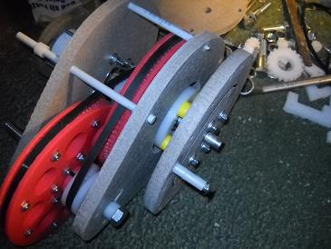 Hi, the center of each pulley set is a slightly smaller diameter. Thanks for the suggestion if the current configuration becomes a problem I can add shoulders to the pulleys. The belts are only installed on a test rig and I am able to spin test the current configuration manually. When the shafts are parallel the belts track to the center of the pulleys. The belts are very quiet and the units spins very easily compared to the gears that I was trying use. I am surprised how well the timing belts grip the pulleys. I hope to be able to perform a road test within the next week. Enjoy the day.