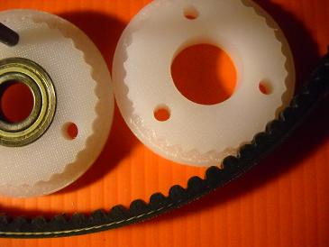 You've manufactured another quality component.How did you decide on the pitch of the "teeth".The picture shows the belt partially compressed around the gear.I think the belt will ride in and out of profile at different stages of drive and could leave you with the problem that prompted this alteration.I hope you'll accept my comments as observations not criticism.To my knowledge the belts are toothed for durability by reducing the repetitive compression (around the pulleys) and exspansion (straightening out) in opperation.Cheers Rastus see Rastus graduate advise generously