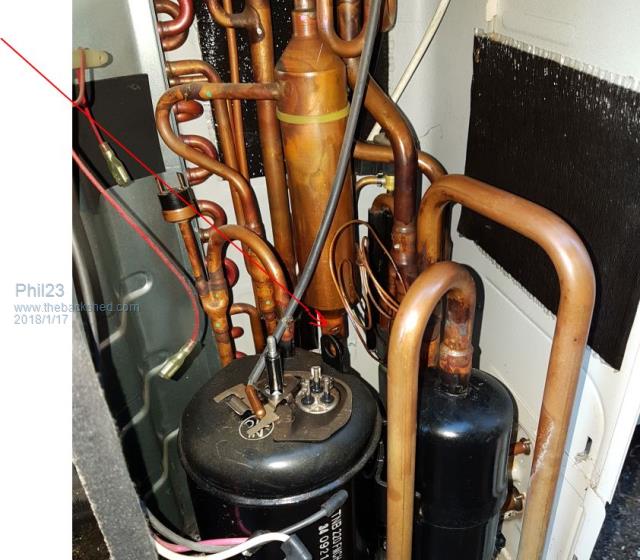 Saddest think about both my A/C's is they have a bit too much standby usage. Mostly attributed to the sump heater to keep the gas out of the oil. Not sure it can be disconnected, of the temp that needs maintaining. The Mitsi just has 3 wires to the compressor, & haven't check out the schematic that I spotted under the lid. And yes, the capillary tube would be well worth checking in all cases. It's probably been rubbing there it's entire life. Phil. |