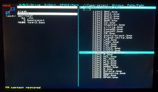 I went through a number of "my own ICON files" in BMP format, all files the same size. But at the 33rd one that I was going to look at, it gives Error: Not enough memory. I close FM and start it up again. Tried doing the same thing again, at the 33rd one it gives Error: Not enough memory. Not a big deal for me, just a note from me...