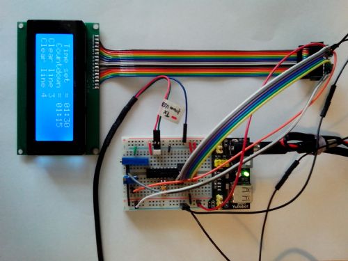 Another confirmation that the beta7 LCD routine works well on a 4 line display. This time using the white-on-blue J204A module that was $9 on DX.com last year. It looks pretty good.