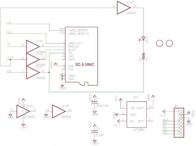 Has Card Detect AND an activity LED. (Neat way of connecting the LED too). Schematic available on website. SD card breakout board (with CD) There are 10 kinds of people in the world. Those that understand binary and those that don't. |