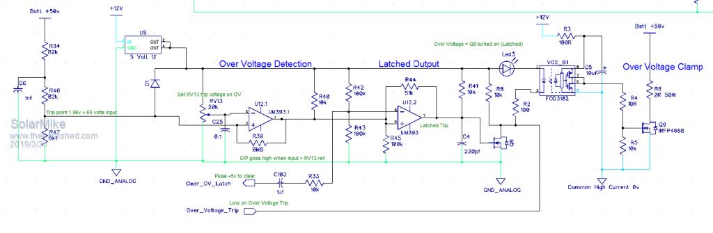 The PV isolator used here is to prevent the battery back feeding into the PV array when it gets dark and its output voltage is < battery. You could use a diode (wastes power), I opted for mosfets with a combined 5mR resistance; it is not a true isolation circuit as a relay would be, nor is true isolation needed. As mentioned earlier those relays are not rated for high voltage DC switching and long term could prove suspect reliability.