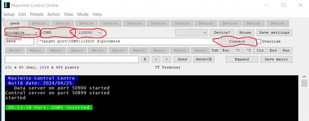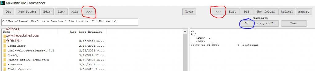 Stan, If you have either windows or linux, install MMEdit please. MMEdit You will be amazed what this can do. No more commands typing. When you have installed: - open MMCC - select COM port - Select PicoMiteVGA (or PicoMite) - Press "CONNECT". In the text field a green message is shown that it is connected. Then open the file manager - press MODE - select file manager You can select files, and using the ">>>" and "<<<" buttons copy them. Change the drive with the blue button (A or B on PicoMite) Right side is the PicoMite, left side is the PC. When done, close the file manager. You can save the configuration with "SAVE settings". Note that my MMCC has the GEEK stored as one default. If you want to modify or create a program you can open MMEDIT, the opening, editting and closing of files is very intuitive. To run the program on a connected PicoMite, you press the rightmost icon. And it is automatically copied to the Mite (using MMCC) and run. ![]() Volhout Edited 2024-08-02 18:13 by Volhout PicomiteVGA PETSCII ROBOTS |
