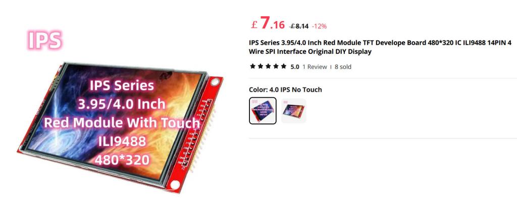 More info on the 4" IPS panel Just received a "standard" 4" ILI9488 and the image quality on the IPS version is MASSIVELY better. If you want a display as a console I can strongly recommend this over the standard |