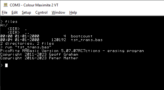 Forum Index : Microcontroller and PC projects : PicoMite/PicoMiteVGA/WebMite V5.07.07 release candidates