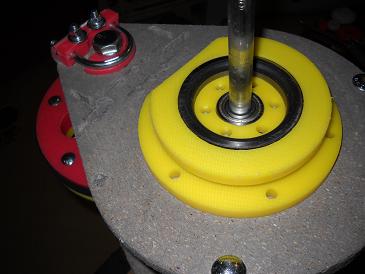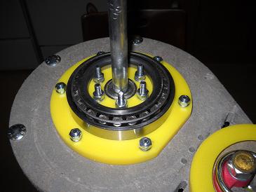 Hi, the blade rotors are mounted using bearing and transfer energy to the belt drive using the bolt ends extending upward located near the center. Using a lager ID bearing as shown is the only solution that I could think of that will still work with what is there. photo of completed assembly